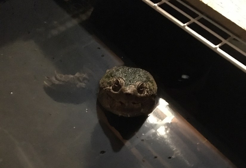 I started during the slow season, when there were relatively few turtles left in Pam’s care. The ones that remained were either injured late in the season or their injuries were so severe that they wouldn’t be recovered soon enough to be released before it got too cold out. Turtles can hibernate, but they need to be healthy enough to do so. The ones left had head trauma, jaw damage, or an infection. Poor things.
