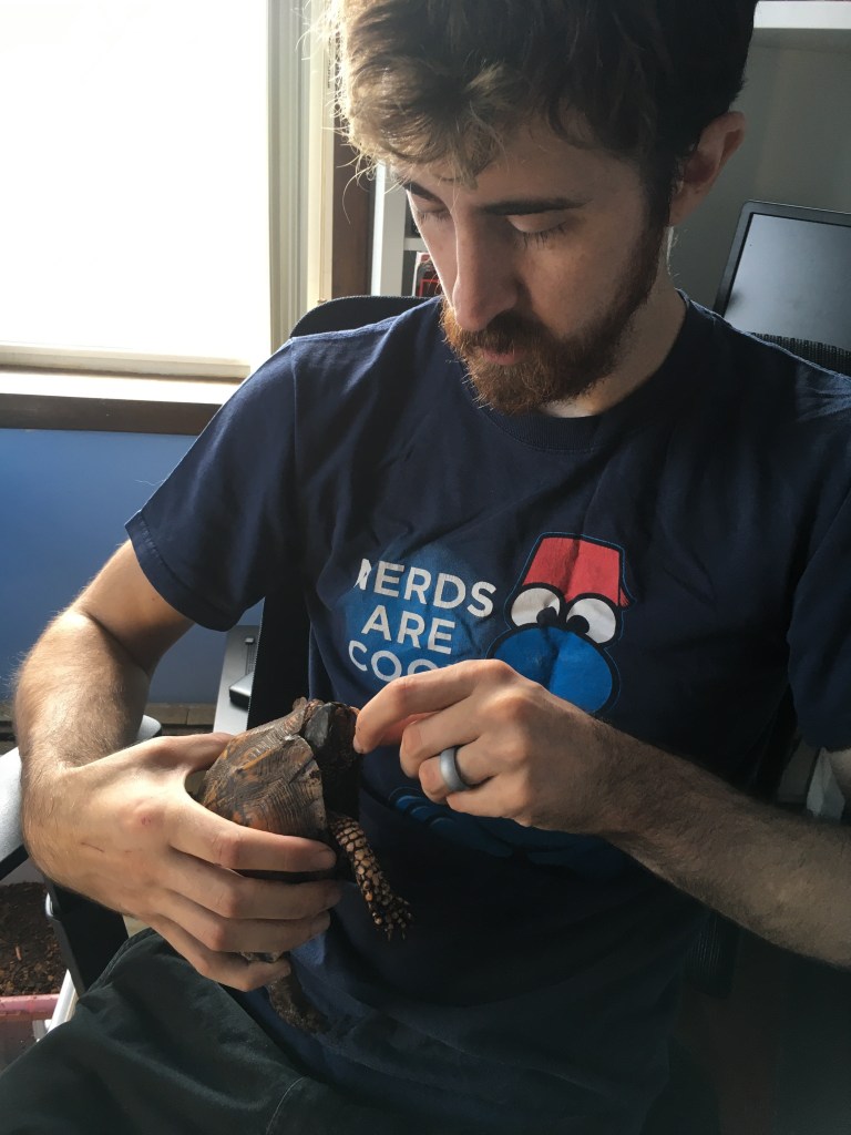 People who don’t work with turtles closely (or even others who do) may call me crazy, but I could tell when there was something going on in his head and when there wasn’t. There was a look in his one good eye, call it a light or a spark or whatever you want, an alertness that came and went. Sometimes, he was just a turtle-shaped organism continuing to exist through automatic processes and force of habit. But much more frequently now, he actually seems like a turtle. He’s a living, breathing, thinking being.