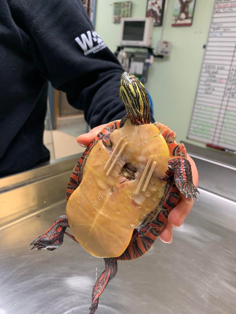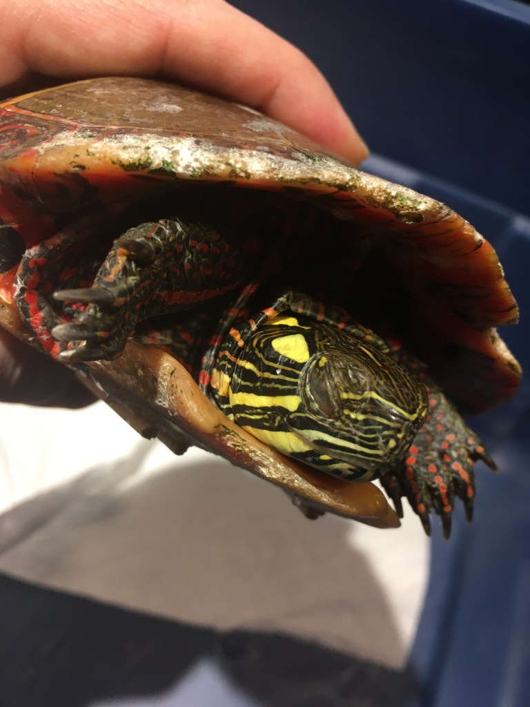 If the finder had sought help right away, it’s almost guaranteed that she would have made a full recovery. Her initial injuries weren’t really that bad, and medical intervention would have helped her get stronger and regrow her shell. Instead, she received no help and was actively injured further through ignorance and neglect. Right now, my overwintering patients are gearing up for release. They’ve been resting and healing for months and the lengthening daylight has made them more active. This turtle could have been among them, getting ready to go home to the wild. But no, she is dead and decomposing, all because one person with no knowledge of what they were doing tried to go it alone. I can’t imagine they even bothered to google anything, because a search for any variation of, “What do I do with an injured animal I found?” is going to come up with “call a rehabber” or “bring it to a vet”. Even if you don’t reach the exact right person on the first try, most people in any kind of animal care profession will at least point you in the right direction.